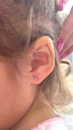 Cada perforación es realizada por manos expertas en un ambiente estéril y profesional, priorizando el bienestar y la comodidad de tu bebé. También nos aseguramos de que cada detalle esté alineado y simétrico, para que tu pequeña pueda lucir sus aretes con confianza a lo largo de su vida.